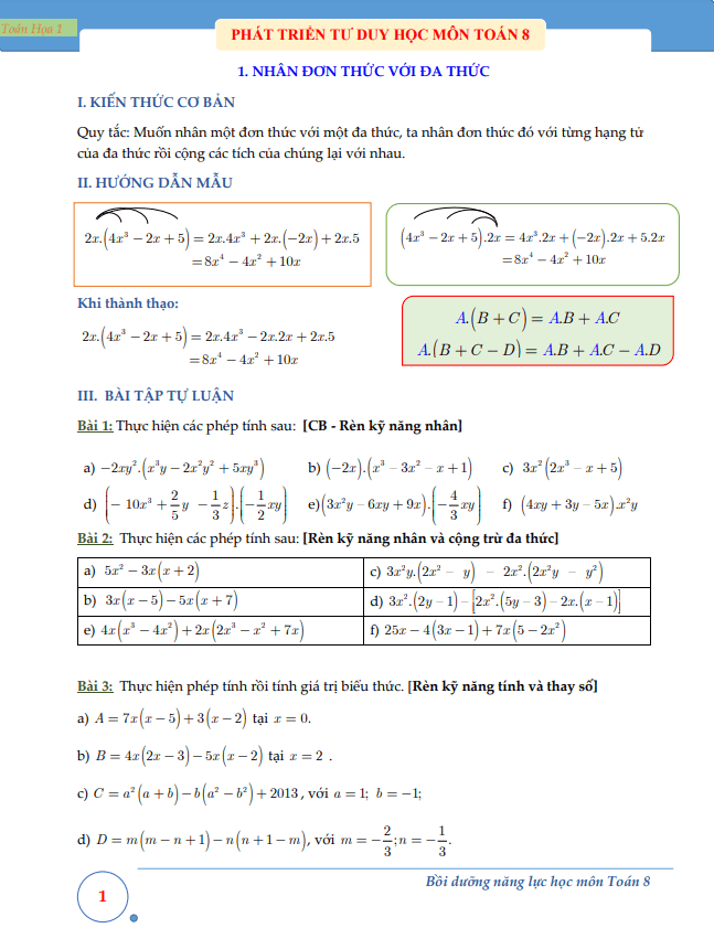 Tài liệu này sẽ giúp học sinh lớp 8 bồi dưỡng năng lực và phát triển tư duy học Toán, từ các kiến thức cơ bản đến những bài tập nâng cao, giúp họ tự tin hơn khi học môn Toán.