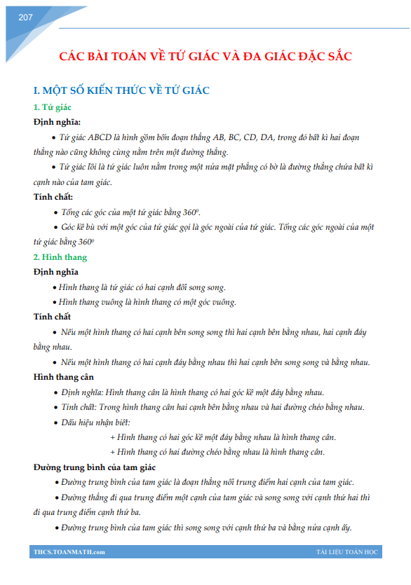 Với tài liệu này, việc ôn tập và nắm vững kiến thức về tứ giác và đa giác sẽ trở nên dễ dàng và thú vị hơn bao giờ hết. Hãy cùng tham gia và trau dồi kiến thức để thành công trong kỳ thi sắp tới!