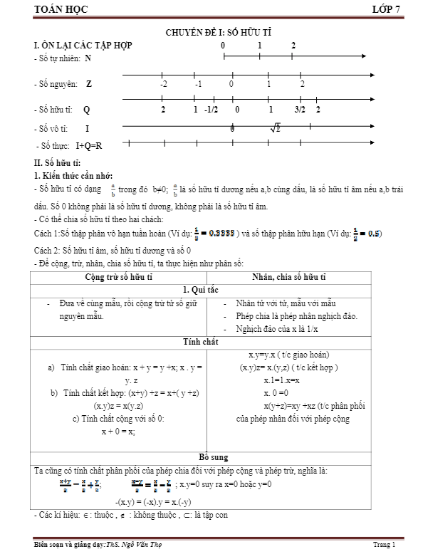 Tài liệu Toán lớp 7 – Đại số và Hình học của thầy Ngô Văn Thọ