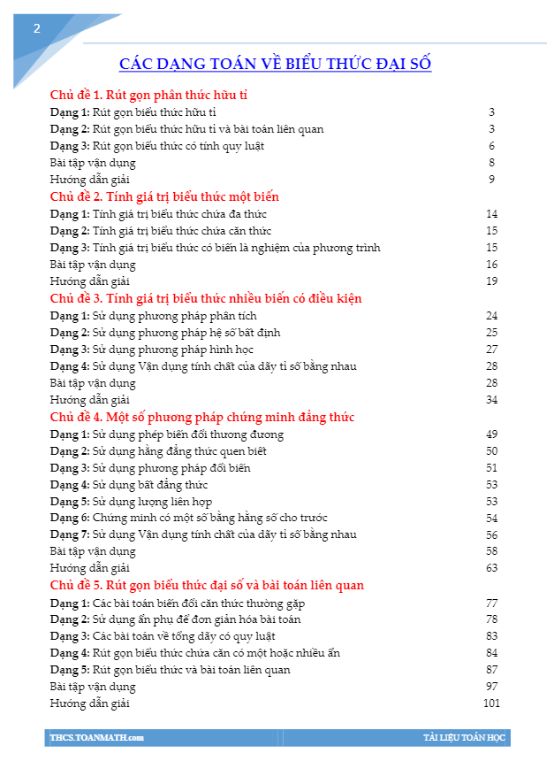 Các dạng toán về biểu thức đại số