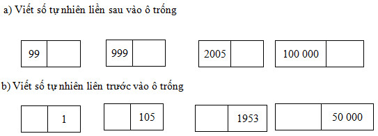 4. Viết số thích hợp vào ô trống trong mỗi dãy số sau: