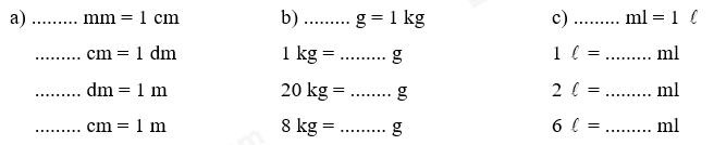 Giải bài 79: Ôn tập hình học và đo lường (tiết 2) trang 120 vở bài tập Toán 3 – Kết nối tri thức với cuộc sống. Viết số thích hợp vào chỗ chấm. a) 400 mm + 250 mm = . . . . ..