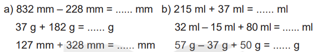 Thực hiện tính rồi viết kết quả thích hợp vào chỗ chấm.