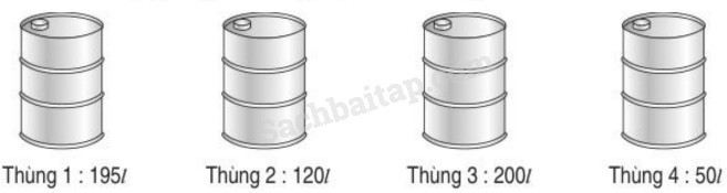 a. Dãy số lít dầu đựng trong 4 thùng trên viết theo thứ tự từ bé đến lớn là: 50 lít (thùng 4), 120 lít (thùng 2), 195 lít (thùng 1), 200 lít (thùng 3)