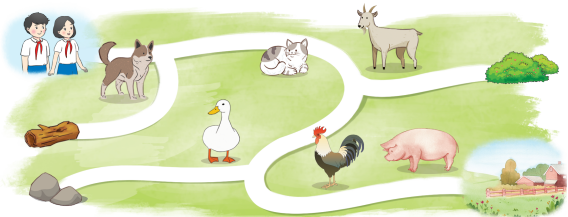 Tìm từ ngữ gợi tả tiếng kêu của mỗi con vật gặp trên đường đi