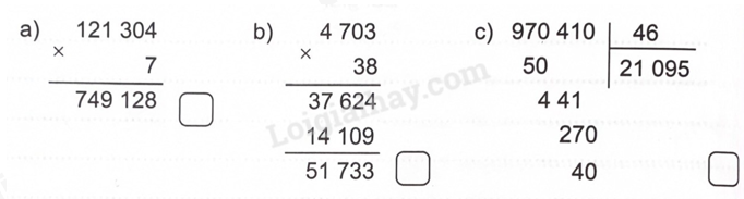 Kiểm tra cách đặt tính và kết quả của từng phép tính.