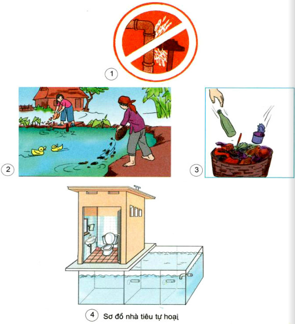 Quan sát các hình trang 58, 59 SGK, tìm xem việc làm nào nên làm hoặc không nên làm để bảo vệ nguồn nước và hoàn thành bảng sau :