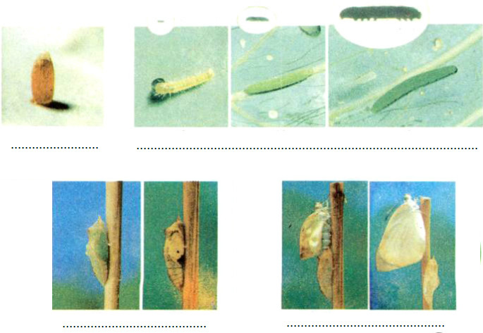 bướm; trứng, sâu (ấu trùng); nhộng |