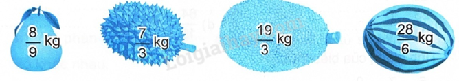 Viết tên các quả dưới đây theo thứ tự có cân nặng từ bé đến lớn.