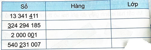 Mỗi chữ số được gạch chân trong bảng thuộc hàng nào, lớp nào?