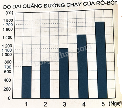 Biểu đồ dưới đây cho biết độ dài quãng đường chạy của Rô-bốt trong 5 ngày đầu tập luyện để chuẩn bị tham dự Hội khỏe Phù Đổng.