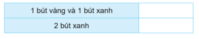 – Mai lấy được 1 chiếc bút màu xanh, 1 chiếc bút màu vàng.