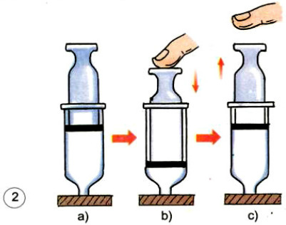 2.1.Khi dùng tay ấn thân bơm vào sâu trong vỏ bơm tiêm (hình 2b), hiện tượng gì sẽ xảy ra?