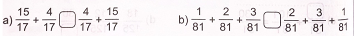 b) $frac{1}{{81}} + frac{2}{{81}} + frac{3}{{81}} = frac{2}{{81}} + frac{3}{{81}} + frac{1}{{81}}$
