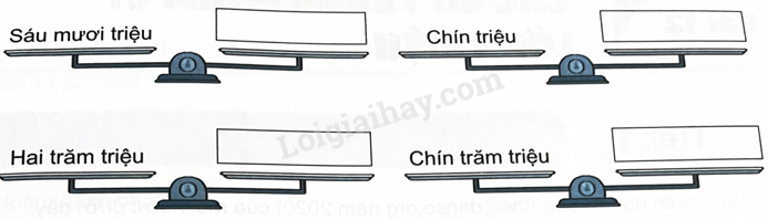 Quan sát hình vẽ và viết số tương ứng với cách đọc ở đĩa cân bên trái
