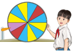 An quay vòng quay 1 lần. Khi vòng quay dừng lại thì chiếc kim chỉ vào một ô đã tô màu. Theo em, chiếc kim có những khả năng chỉ vào ô màu nào?