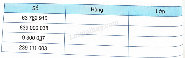 Mỗi chữ số được gạch chân trong bảng dưới đây thuộc hàng nào, lớp nào?
