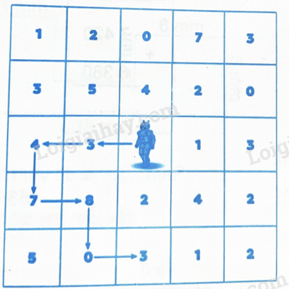 Chẳng hạn, với cách đi theo đường mũi tên như trong hình vẽ trên, rô-bốt sẽ có được số 347 803.