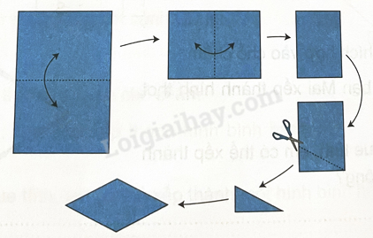 Gấp rồi cắt theo hướng dẫn như trong hình dưới đây để được một hình thoi.
