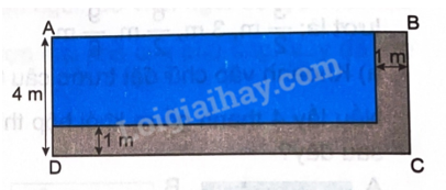 Mảnh đất hình chữ nhật ABCD có chiều rộng 4 m, diện tích $frac{{91}}{2}$ m2. Trên mảnh đất này, người ta đào một cái ao hình chữ nhật để thả ba ba, phần đất còn lại làm một lối đi rộng 1 m (như hình vẽ). Diện tích cái ao là ….. m2.