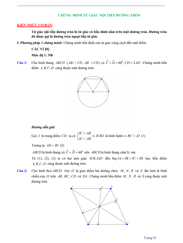 Tài liệu này gồm 19 trang, cung cấp hướng dẫn chi tiết về phương pháp giải bài toán chứng minh tứ giác nội tiếp đường tròn. Đây là một dạng bài toán phổ biến trong chương trình Toán lớp 9 và trong các bài tập thực hành.