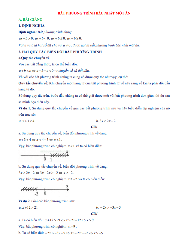 - Dạng 2: Giải bất phương trình bậc nhất một ẩn.