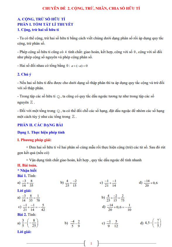 Thông qua việc phân tích chi tiết từng dạng bài tập và cách giải, tài liệu này sẽ giúp học sinh hiểu rõ hơn về cộng, trừ, nhân, chia số hữu tỉ và rèn luyện kỹ năng giải bài tập một cách chính xác và linh hoạt.