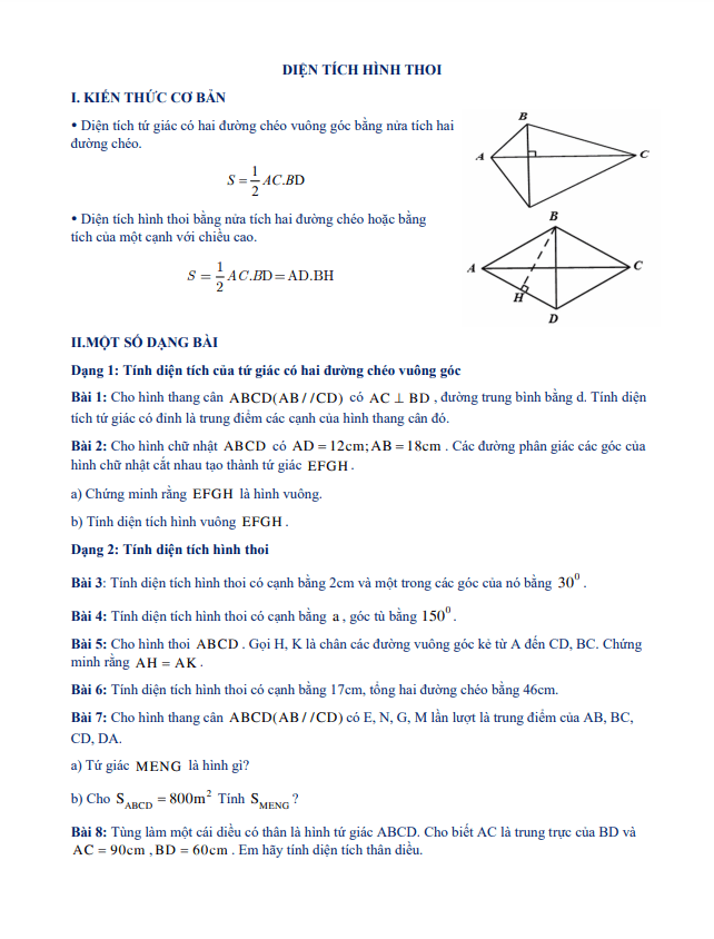 Một bộ tài liệu chuyên về diện tích hình thoi