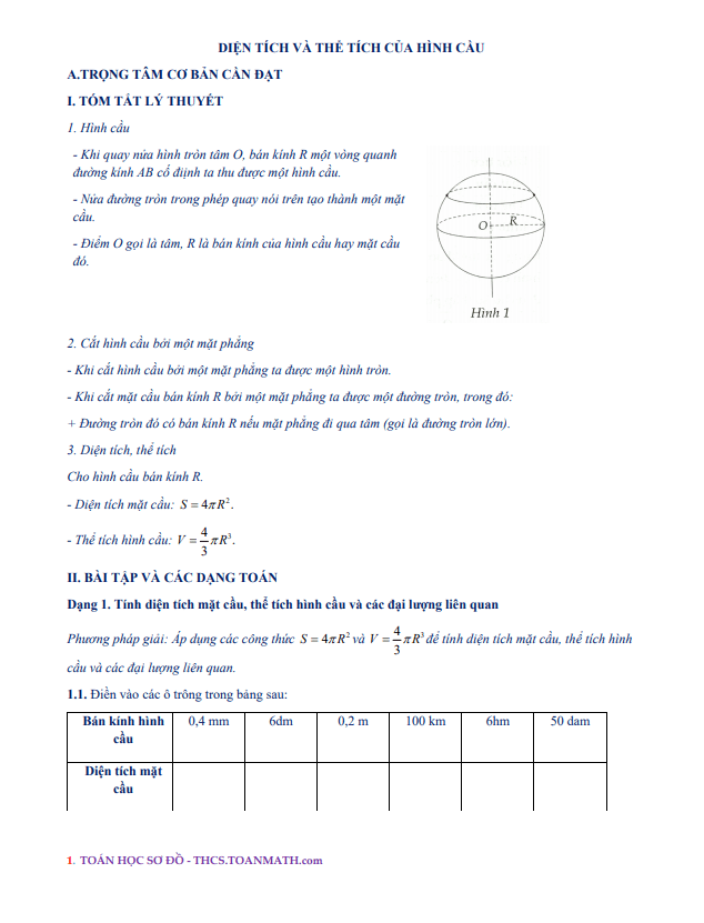 Chuyên đề về hình cầu, diện tích mặt cầu và thể tích hình cầu