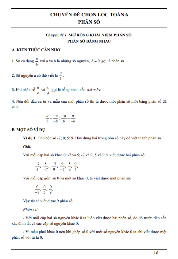Chuyên đề 1: Mở rộng khái niệm phân số và phân số bằng nhau.