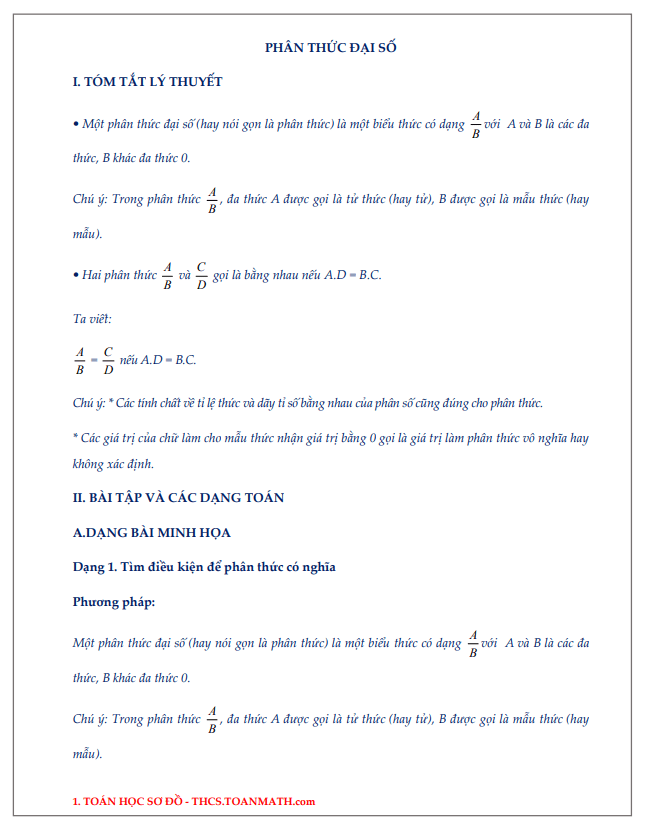 Qua chuyên đề này, học sinh sẽ được trang bị kiến thức vững chắc về phân thức đại số và có thể áp dụng vào việc giải các bài tập phức tạp trong môn Đại số.
