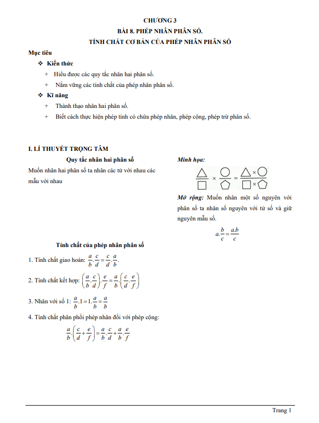 Chuyên đề phân số: Tính chất cơ bản của phép nhân phân số