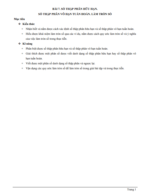 - Nhận biết và xác định số thập phân hữu hạn và vô hạn tuần hoàn.