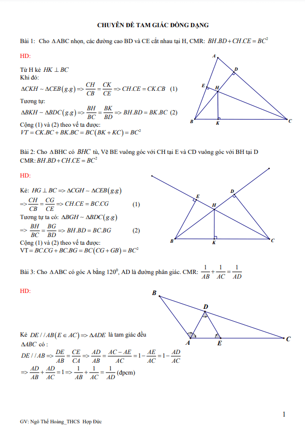 Chuyên đề tam giác đồng dạng bồi dưỡng học sinh giỏi lớp 8 môn Toán