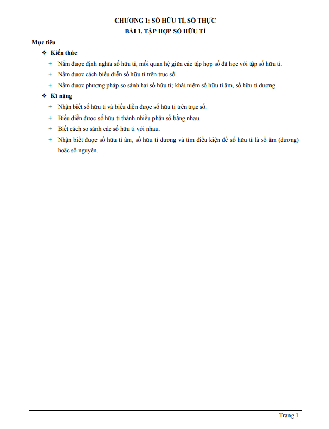 - Nắm vững định nghĩa của số hữu tỉ và mối quan hệ giữa các tập hợp số khác với tập số hữu tỉ.