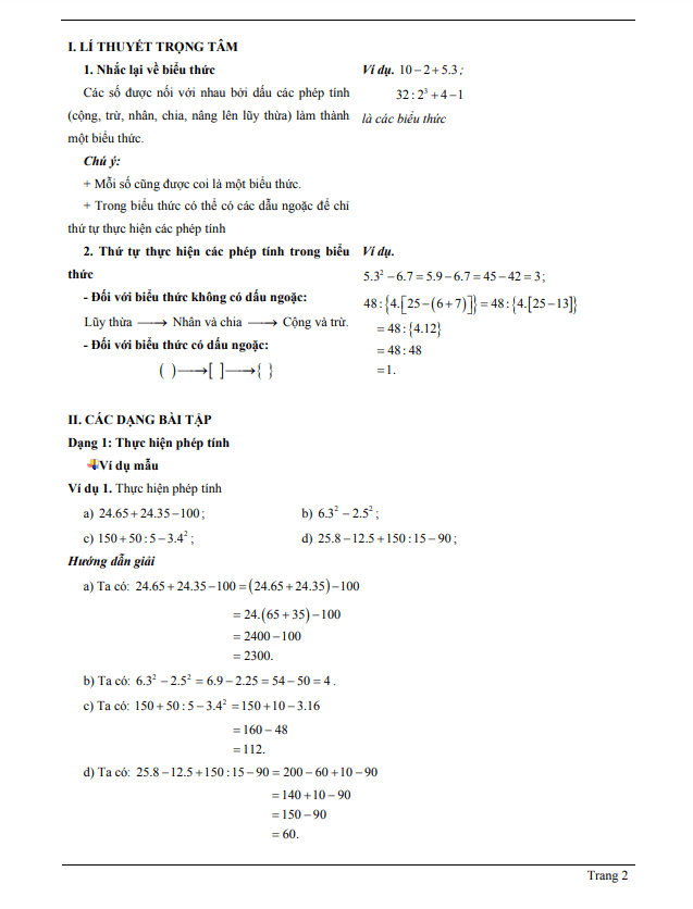 – Đối với biểu thức không có dấu ngoặc: Lũy thừa → Nhân và chia → Cộng và trừ.
