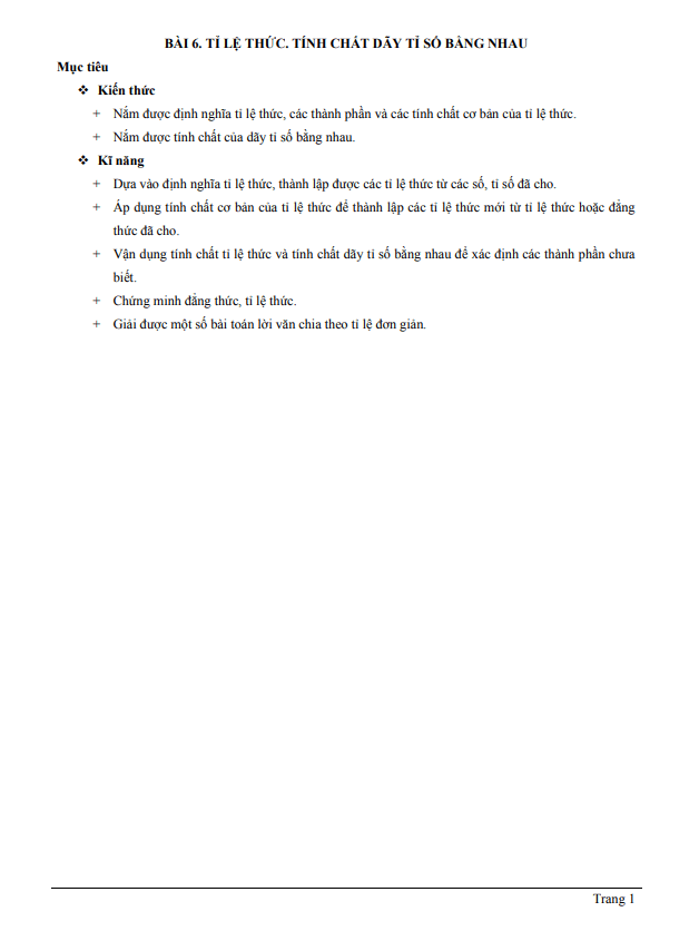 - Nắm được định nghĩa của tỉ lệ thức và các tính chất cơ bản của nó.