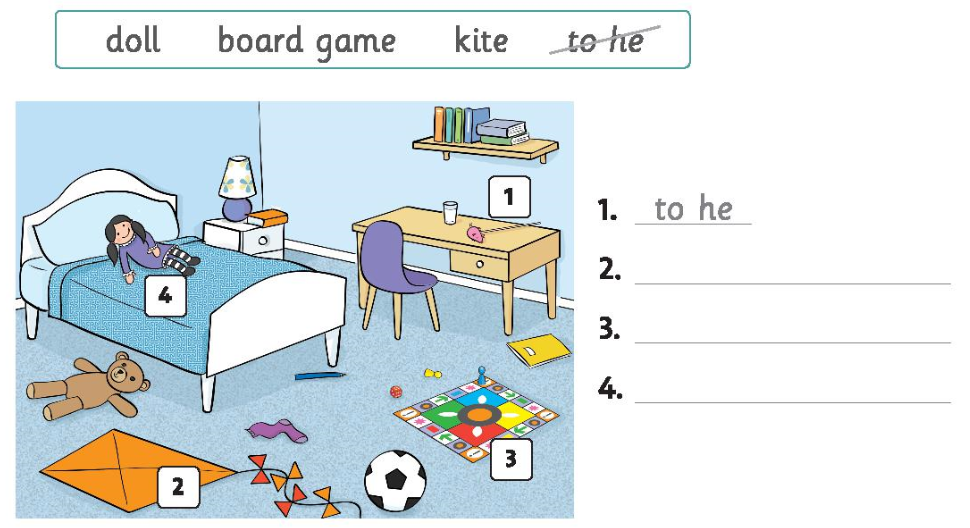 1. Look and write.