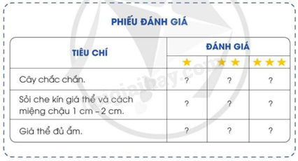 Trồng và chăm sóc cây theo những gì đã học và nhận xét sản phẩm của các bạn theo tiêu chí trên.
