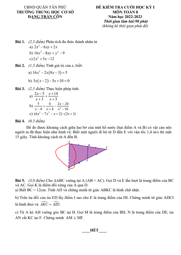 Đề cuối học kỳ 1 môn Toán lớp 8 năm 2022 – 2023 trường THCS Đặng Trần Côn
