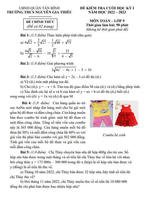 Chúng ta hãy cùng tìm hiểu về đề thi cuối học kì 1 môn Toán lớp 9 năm học 2022 – 2023 của trường THCS Nguyễn Gia Thiều, TP HCM. Đề thi này bao gồm ba bài toán thú vị với nhiều kiến thức và kỹ năng được áp dụng.