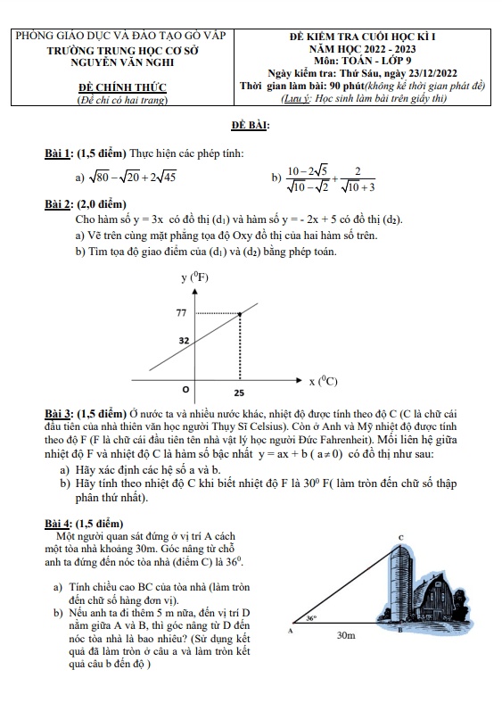 Trích dẫn Đề cuối kì 1 Toán lớp 9 năm 2022-2023 trường THCS Nguyễn Văn Nghi – TP HCM: