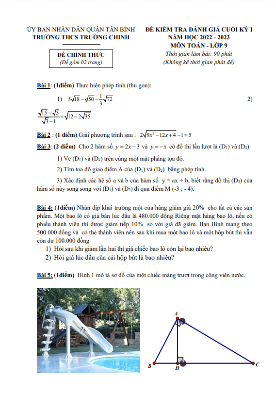 Đề cuối kì 1 Toán lớp 9 năm 2022 – 2023 Trường THCS Trường Chinh TP HCM