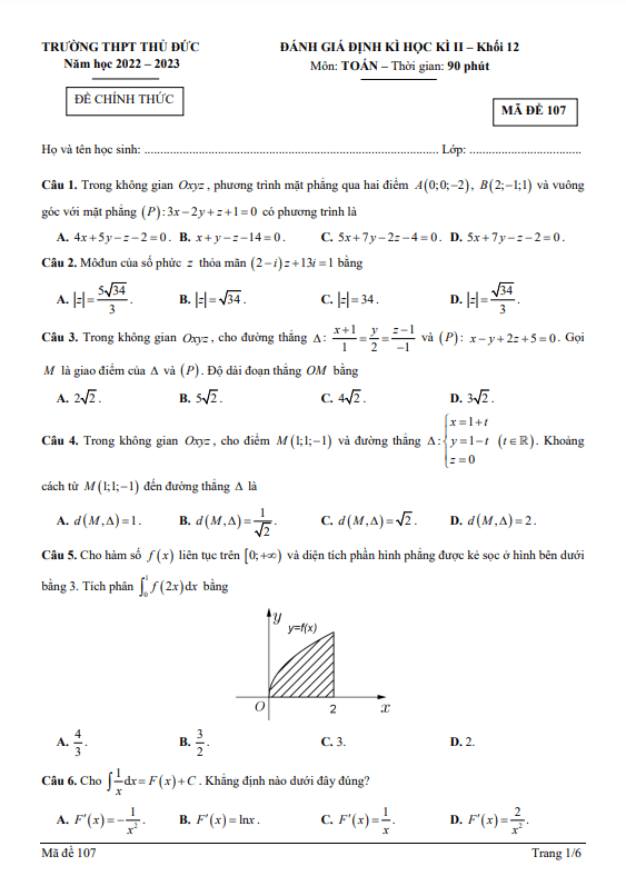Sytu xin được giới thiệu đến quý thầy, cô giáo và các em học sinh lớp 12 bài kiểm tra đánh giá định kì cuối học kì 2 môn Toán lớp 12 trong năm học 2022-2023 tại trường THPT Thủ Đức, thành phố Hồ Chí Minh.