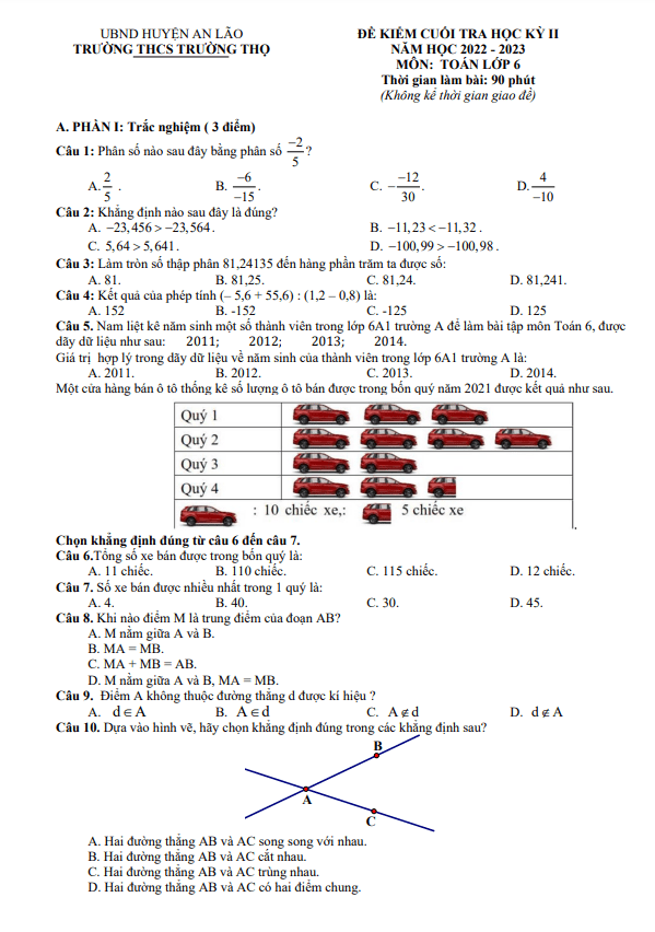 Đề cuối học kì 2 môn Toán lớp 6 năm 2022 – 2023