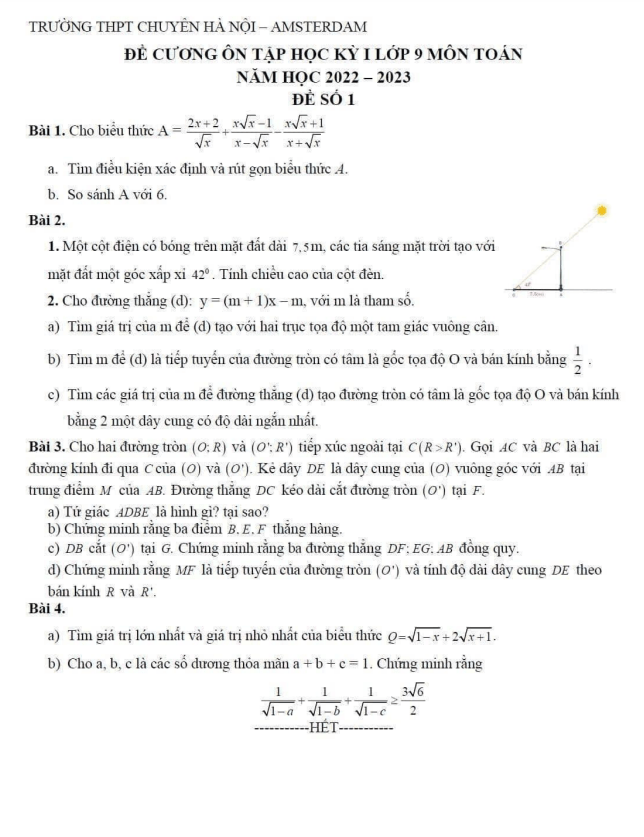 Chào đón quý thầy cô và các em học sinh lớp 9! Sytu xin giới thiệu đến quý vị đề cương hướng dẫn ôn tập cho kỳ kiểm tra cuối học kỳ 1 môn Toán lớp 9 năm học 2022-2023 tại trường THPT chuyên Hà Nội – Amsterdam. Đề cương này sẽ giúp các em tổng hợp và ôn tập kiến thức một cách hiệu quả để chuẩn bị cho kỳ thi một cách tốt nhất. Hy vọng rằng đây sẽ là công cụ hữu ích giúp các em đạt kết quả tốt trong học tập.