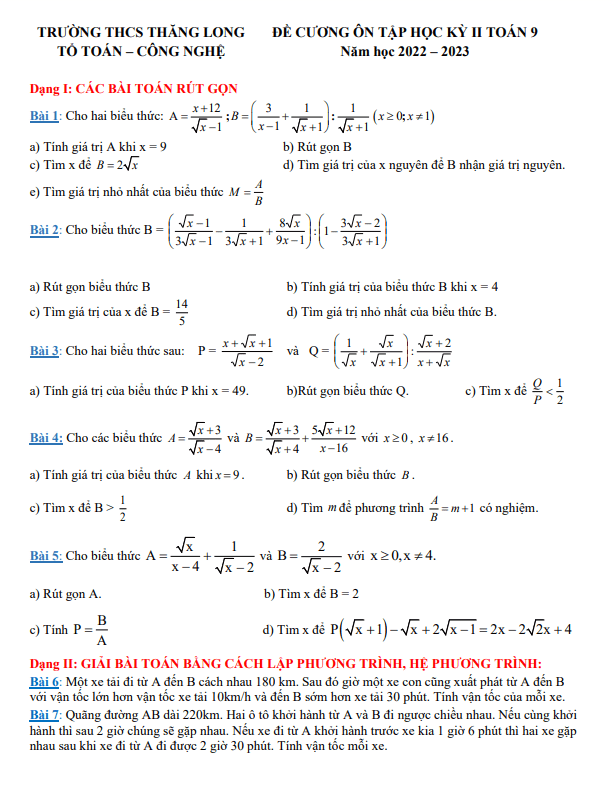 Xin chào quý thầy cô và các em học sinh lớp 9. Sytu xin giới thiệu đến các bạn đề cương ôn tập kiểm tra cuối học kỳ 2 môn Toán cho năm học 2022 – 2023 tại trường THCS Thăng Long.