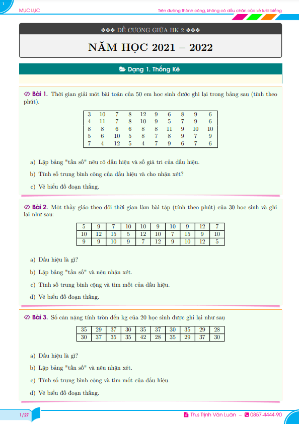 + Dạng 1: Thống kê
