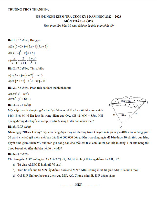 Đề đề nghị cuối học kì 1 (HK1) lớp 8 môn Toán năm 2022 2023 trường THCS Thanh Đa TP HCM