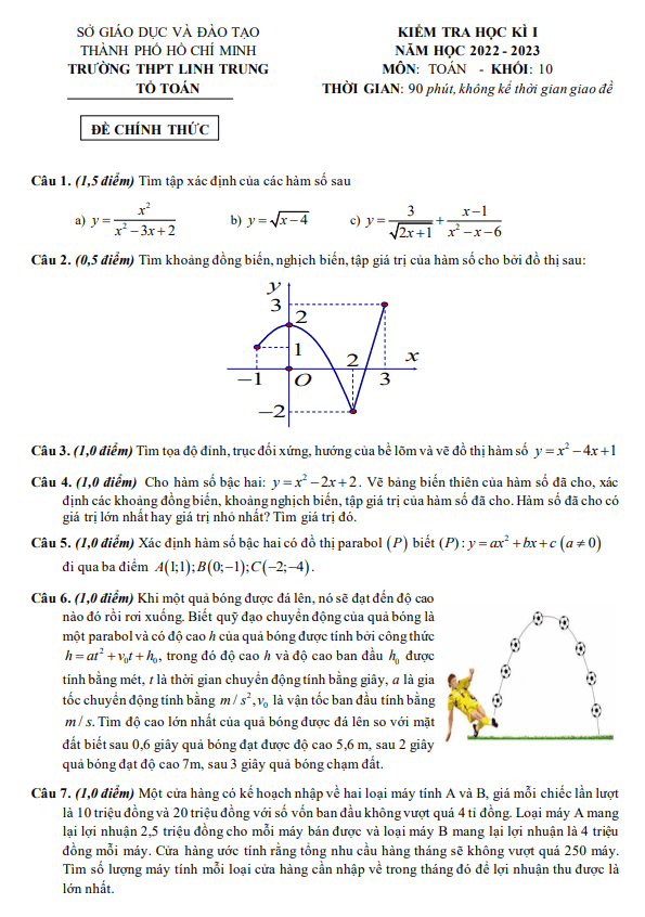 Đề học kì 1 Toán lớp 10 năm 2022 – 2023 trường THPT Linh Trung – TP HCM